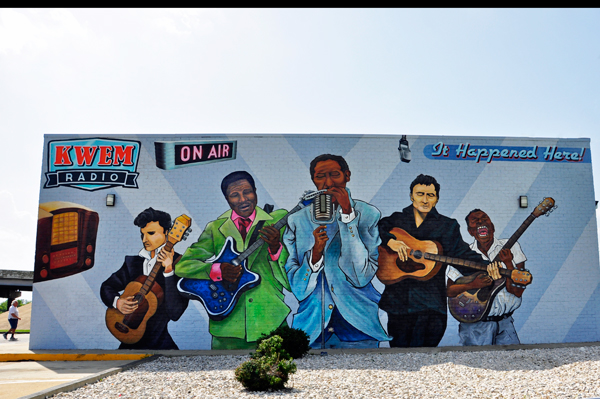 Below: A Mural at a gas station - and a very tiny Lee Duquette entering the building. |