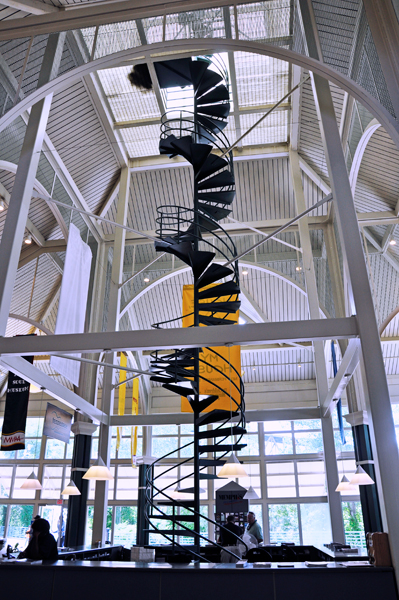 Below: An amazing Spiral Staircase at the Welcome Center. It got narrower at the top. There was no railing. |