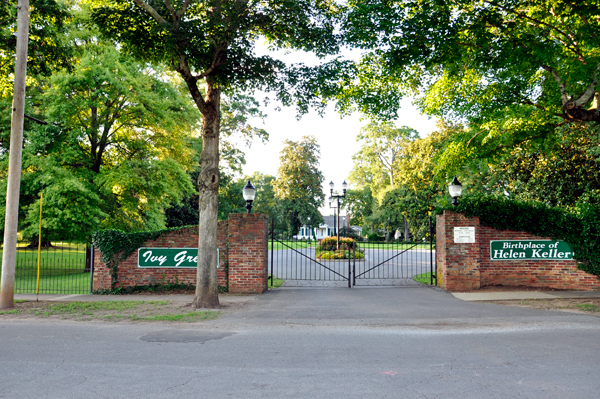 The dramatic life and times of Helen Keller are preserved at her birthplace and childhood home, called Ivy Green. Built in 1820, the home and birthplace cottage are listed on the National Register of Historic Places. Original furnishings of the Keller family decorate the home and museum, highlighted by hundreds of Miss Keller's personal mementos, books and gifts from her lifetime of travel and lectures for the battlement of the world's blind and deaf-blind. Unfortunately, It was NOT OPEN for tours on this date, so obviously the two RV Gypsies were disappointed that they could not go inside. |