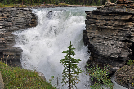 They are not very tall falls, but there are an amazing number of places to view the falls from different angles. First there is the Athabasca River and a great picnic area, followed by the Athabasca Falls viewpoint, then there is the Lower Canyon, the giant pothole, and the lower canyon viewpoint with rafters ............... | |