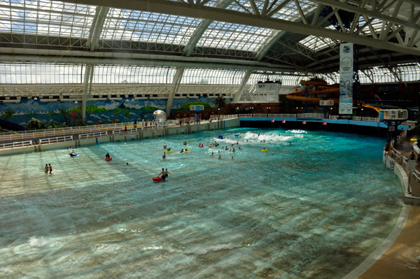 The World Waterpark is the world's second largest indoor Waterpark, built in 1985, with a size of 20,903 square metres (5.165 acres). The park has the world's largest indoor wave pool. The highest slides in the park are the Twister and Cyclone, which are each 83 feet high.