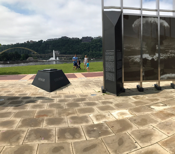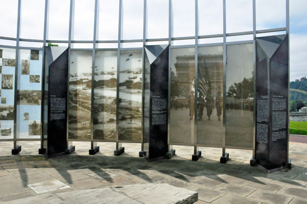 The Southwestern Pennsylvania World War II Memorial in Pittsburgh commemorates the efforts of local veterans who served, plus the men and women who contributed to the war efforts at home. This memorial contains hundreds of photographs. There are 24 granite panels with different narrative subjects, including that of the 28th Infantry Division (Pennsylvania National Guard) marching under the Arc de Triomphe after liberating Paris. It was dedicated in 2013. |