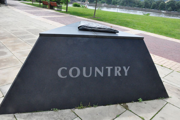 Below: Some of the granite panels in the panorama that divides the pictures on The East Side |