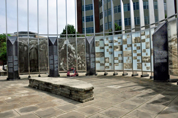 Below: Some of the granite panels in this panorama that divides the pictures - Starting with the last one on the right, which is the first one you will read - "The War Begins" |