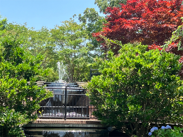 same fountain with fuller trees- May 24, 2020. |