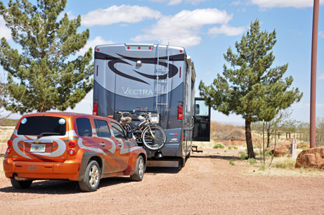 Below: The RV of The Two RV Gypsies at Mountain View RV Park. It was off season so the park was empty except for two RVs. Nobody was at the office so the two RV Gypsies put their money in a box to pay for the campground. No clubhouse, pool, or amenities. Seems like it was just an overnight place for most RVers. | |